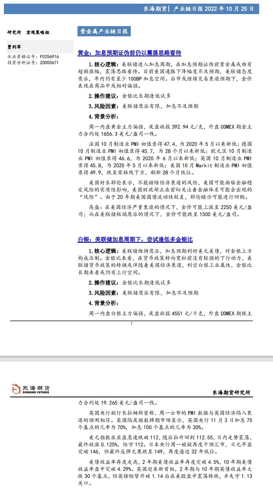标题:【东海期货10月25日产业链日报】贵金属篇:美国Markit制造业PMI跌破荣枯线,金银震荡