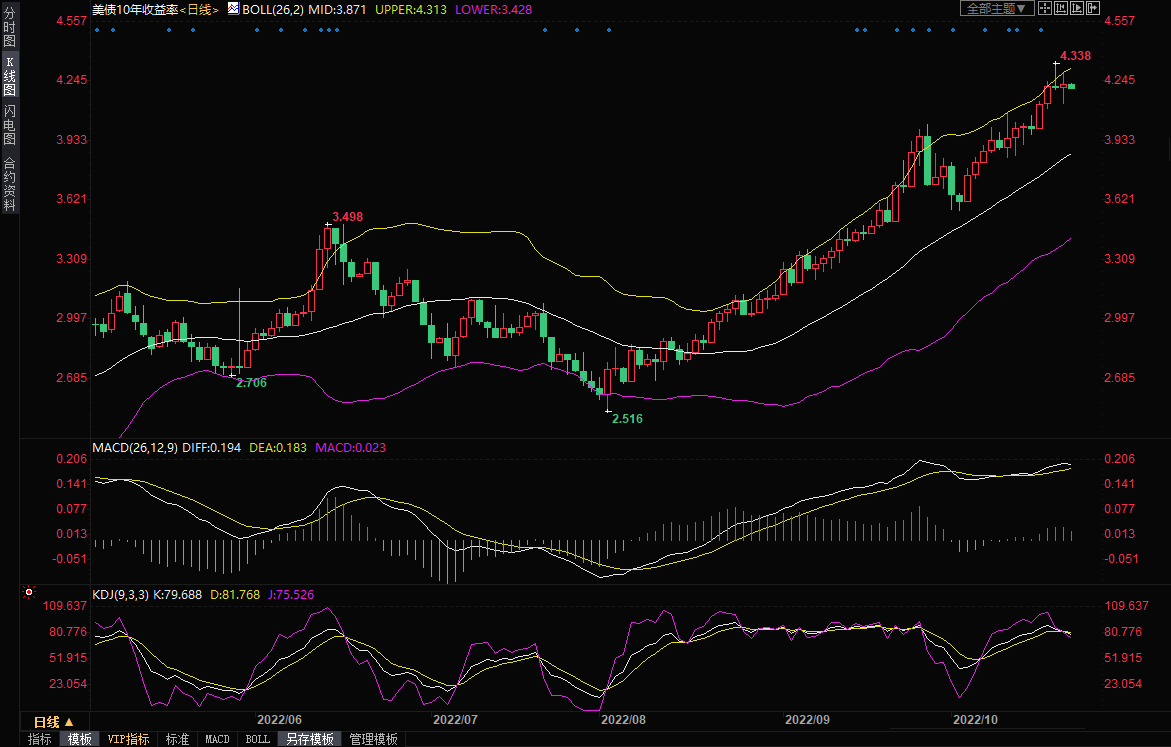美国10年期国债收益率升至4.229%,两年期国债收益率触及4.498%。30年期国债收益率触及4.359%的11年最高。John Hancock Investment Management联合首席投资策略师Matthew Miskin表示:“如果美联储要依赖数据,这些数据点应该是他们的一个关注焦点。是否真的发生,还有待观察。”