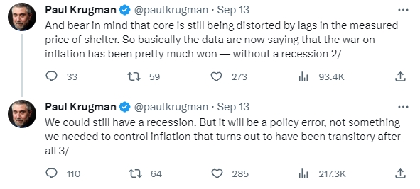 与大多数美国人的普遍情绪形成鲜明对比的是,克鲁格曼描绘了一幅更加光明的经济前景。他如此解释:“请记住,核心仍然因住房测算价格的滞后而受到扭曲。所以基本上现在的数据表明,对抗通胀的战争已经基本获胜,没有出现经济衰退。”