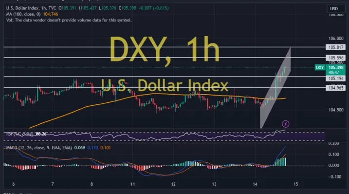 Kitonyi指出,在最新一轮数据出炉后,美元指数周四从趋势线支撑位104.73反弹至105.40左右。在60分钟走势图中,美元指数似乎在一个急剧上升的通道中交易。