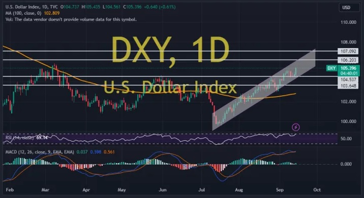 汇通财经APP讯——周五(9月15日)亚市早盘,美元指数在昨日大涨后基本持稳,现报105.34附近。知名财经网站FXDailyReport分析师Nicholas Kitonyi最新撰文,对美元后市走势进行分析。