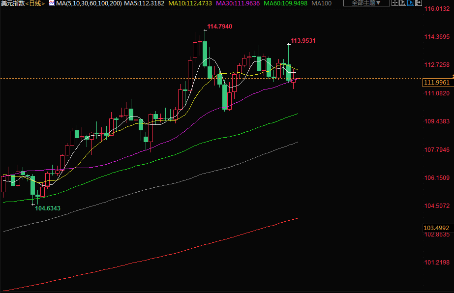 美元指数交投于112附近;美元周一上涨,