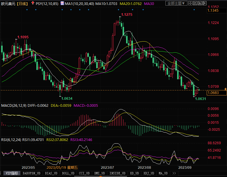 欧元兑美元继续略微上涨0.23%,报1.0683美元。美国经济增长的韧性推动美元在最近几周反弹,但这波涨势可能会受到一系列数据和周三美联储利率决定的考验。周一的数据显示,由于高利率削弱了潜在购房者的承受能力,9月美国住宅建筑商信心连续第二个月下滑,乐观情绪降至4月份以来最低。数据将有可能令美联储本周的利率会议上继续按兵不动。有权威人士分析认为,从点阵图来看,风险天平确实会略偏鸽派,但这应该不会显著影响美元的长期看涨趋势,因为外汇市场显然关注相对增长动态,而美国迄今为止仍然是糟糕的10国集团(G10)中表现最好的国家。目前