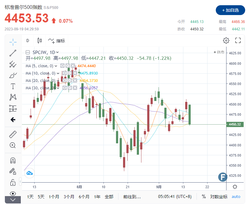 标准普尔500指数小幅上涨0.07%,至4,453.53点;纳斯达克综合指数上涨0.01%,收于13,710.24点。道琼斯工业平均指数上涨6.06点,即0.02%,收于34,624.30点。