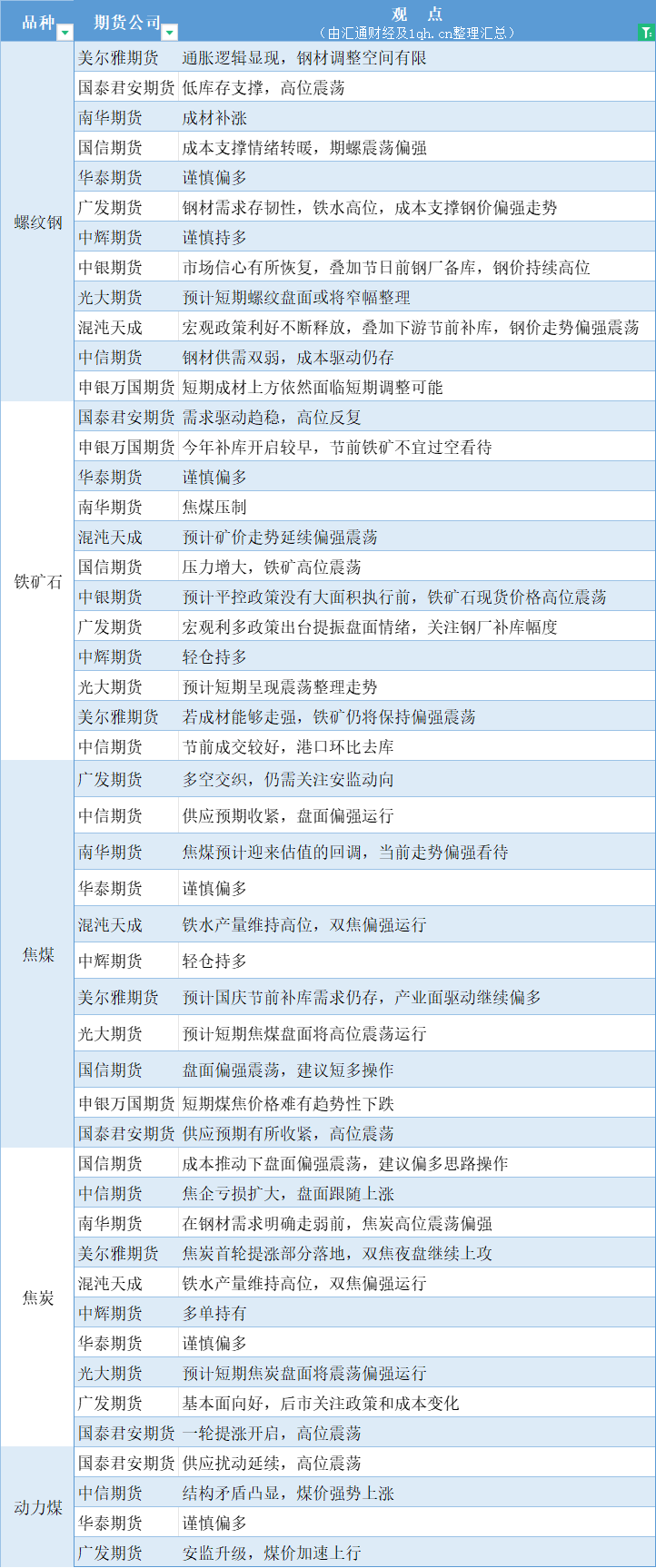 标题:期货公司观点汇总一张图:9月20日黑色系(螺纹钢、焦煤、焦炭、铁矿石、动力煤等)