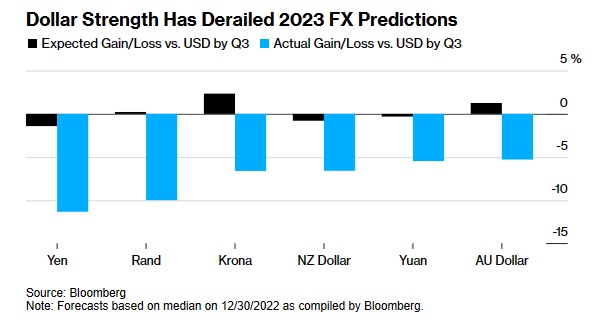 汇通财经APP讯——自今年7月以来,美元的反弹幅度令人惊叹。在过去两个月里,美元兑几乎所有主要货币都大幅升值。美元空头被美国经济令人惊讶的弹性以及随之而来的持续通胀打了个措手不及。