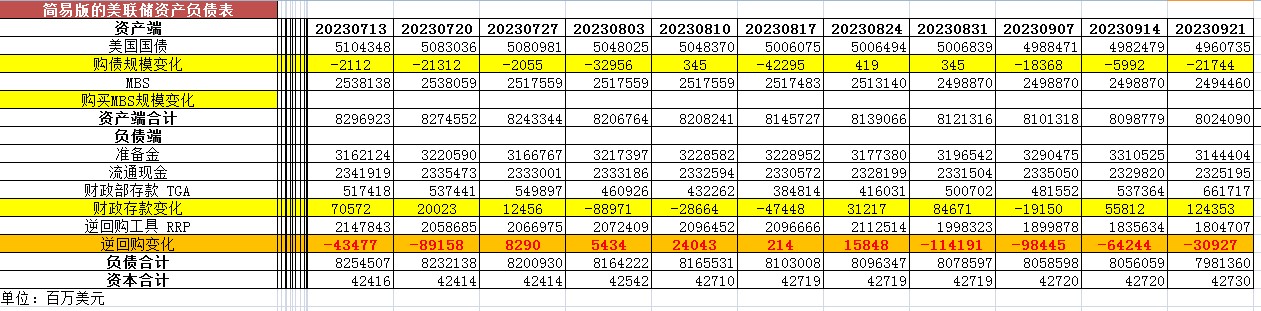 标题:9月22日当周美联储资产负债表变动情况