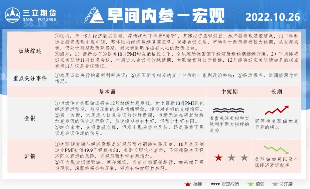 三立期货10月26日早间内参——宏观