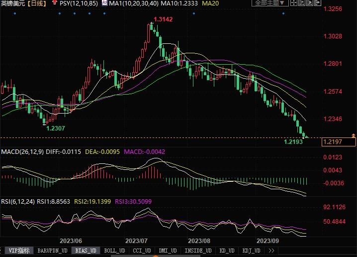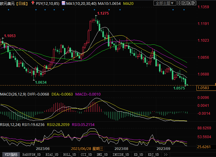欧元兑美元走软。有分析表示:“美联储仍非常依赖数据,并将逐次会议逐次分析,欧洲央行基本上已发出信号,暗示他们现在处于终端阶段,因此,在我们看来,即使二者的基调仅略有轻微变化,也足以让欧元/美元暂时保持一定的锚定。”打后就看主要经济体中,到底谁能维持高利率水平更长时间而又不伤及经济的发展。就当前情况看,美元仍旧是占据鳌头。周一公布德国IFO商业景气报告显示,商业景气指数从8月份的85.8下降到9月份的85.7,数据继续显示欧元区国家经济发展陷入不佳状态。从而也促使交易员继续放胆空头欧元。从技术角度来看,欧元/美元跌穿1.06关键支撑位置后,下一个支撑位置将会瞄准3月份的低点1.0516。