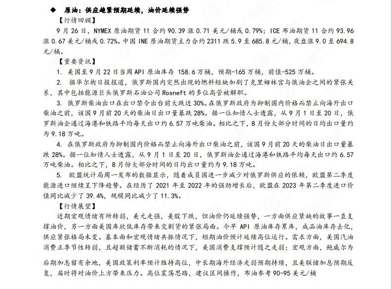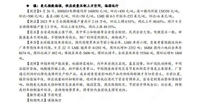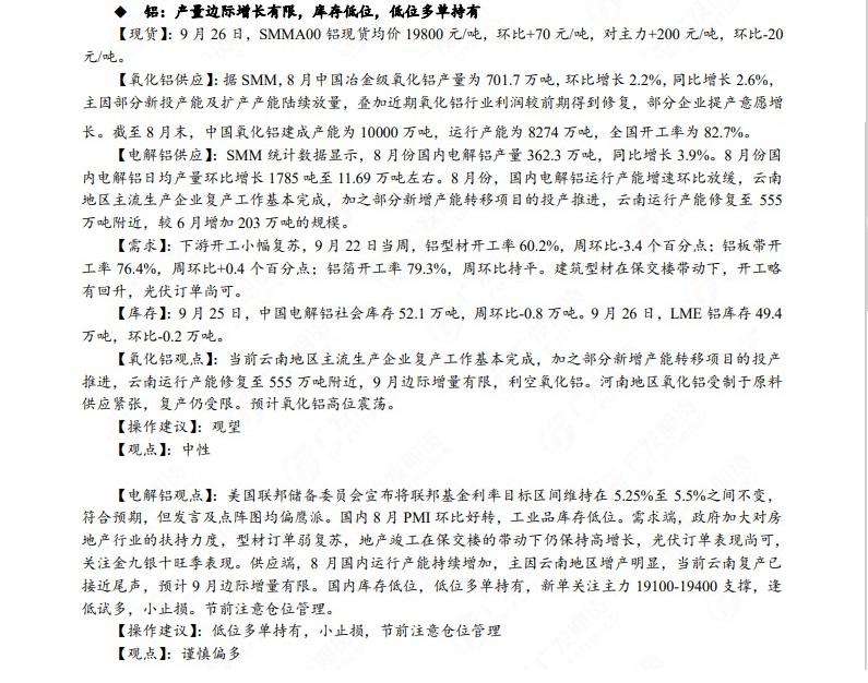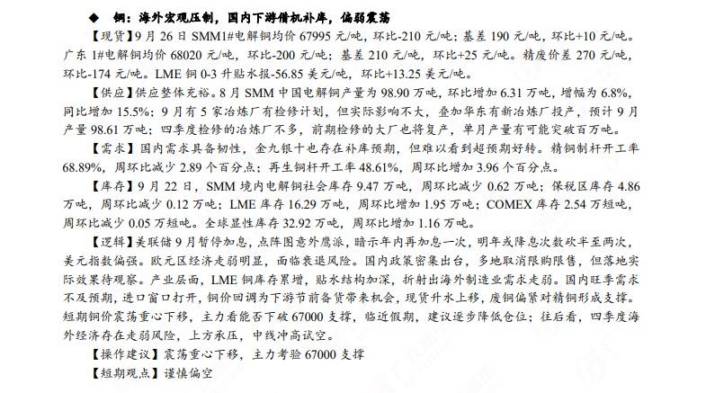 广发期货发布9月27日早知道,铜震荡重心下移,主力参考67000支撑,铝低位多单持有,小止损,节前注意仓位管理;镍谨慎偏空;焦炭和焦炭开始回调,但基本面仍较好,回调后仍有继续上行驱动;玉米维持震荡偏弱走势,原油高位震荡思路,建议区间操作,布油参考90-95美元。