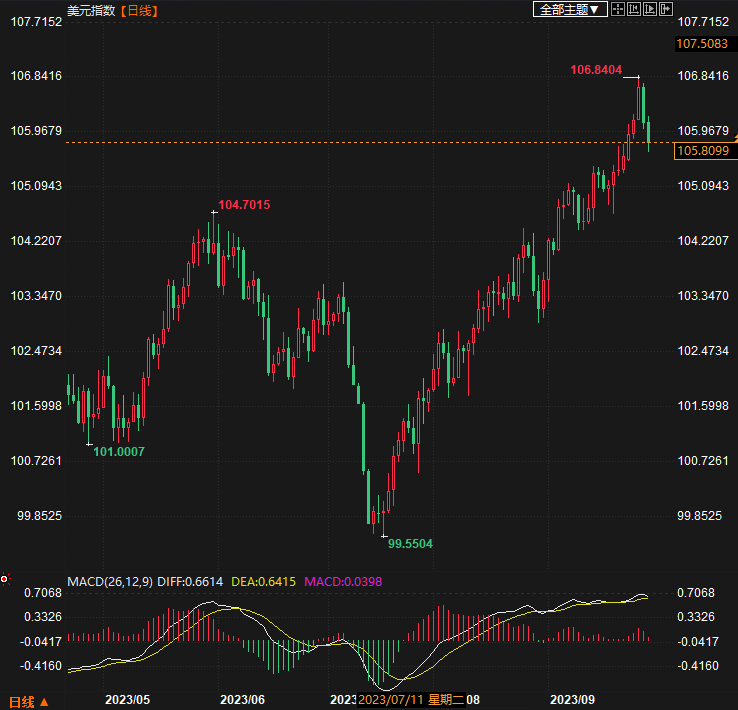 汇通财经APP讯——美元指数:美指周四上涨在106.75之下遇阻,下跌在106.00之上受到支持,意味着美元短线上涨后有可能保持下跌的走势。如果美指今天上涨在106.65之下遇阻,后市下跌的目标将会指向105.90--105.60之间。今天美指短线阻力在106.30--106.35,短线重要阻力在106.60--106.65。今天美指短线支持在105.90--105.95,短线重要支持在105.60--105.65。