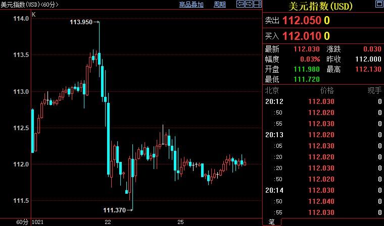 美元指数上浮0.05%至112.039。