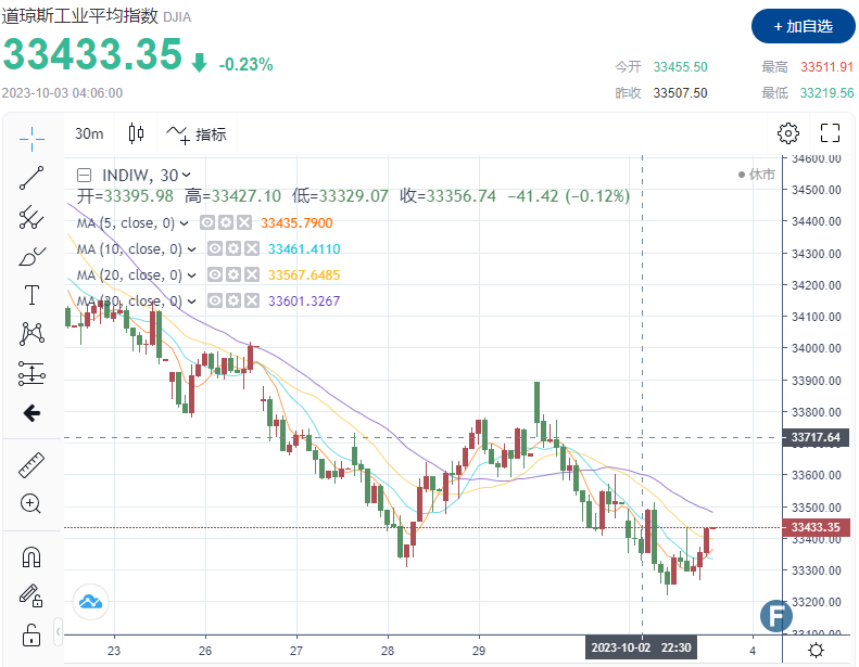 (道指30分钟走势图)