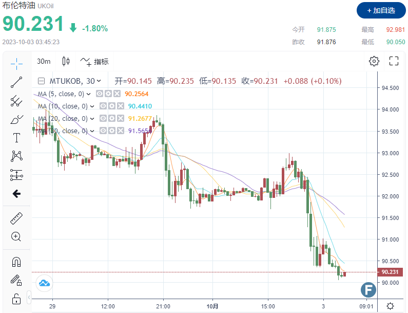 (布伦特原油期货30分钟走势图)
