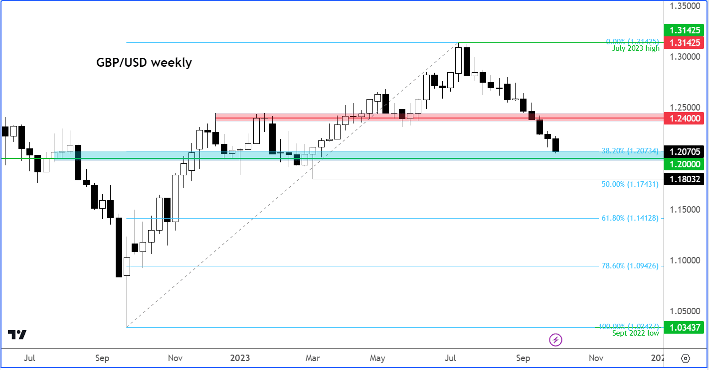汇通财经APP讯——进入2023年最后几个月,英镑兑美元仍处于长期下行趋势。虽然不能排除超卖反弹的可能性,但City Index and Forex.com分析师Fawad Razaqzada认为第四季度可能会出现更多损失,英镑可能跌至1.20或更低。