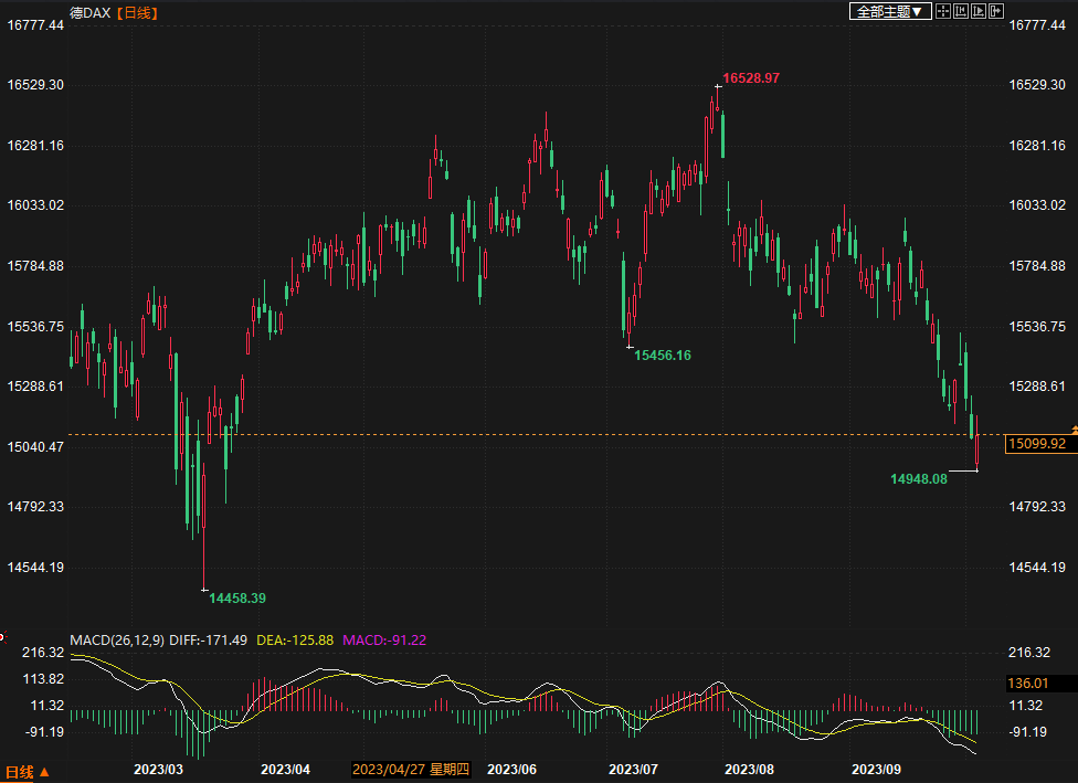 德国DAX30指数收盘上涨13.44点,涨幅0.09%,报15098.65点;