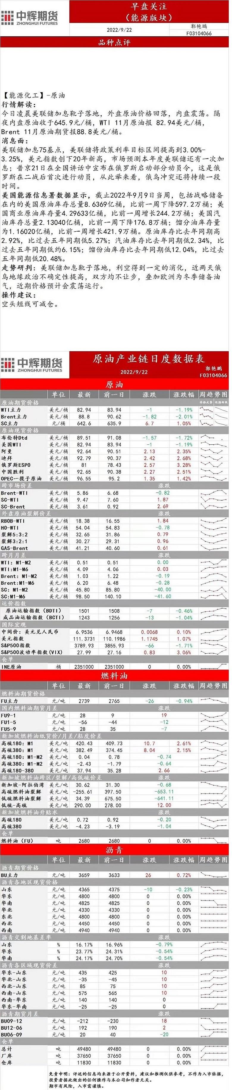 9月22日,中辉期货发布能源早盘关注,预计近期价格将震荡运行,空头短线可以减仓。