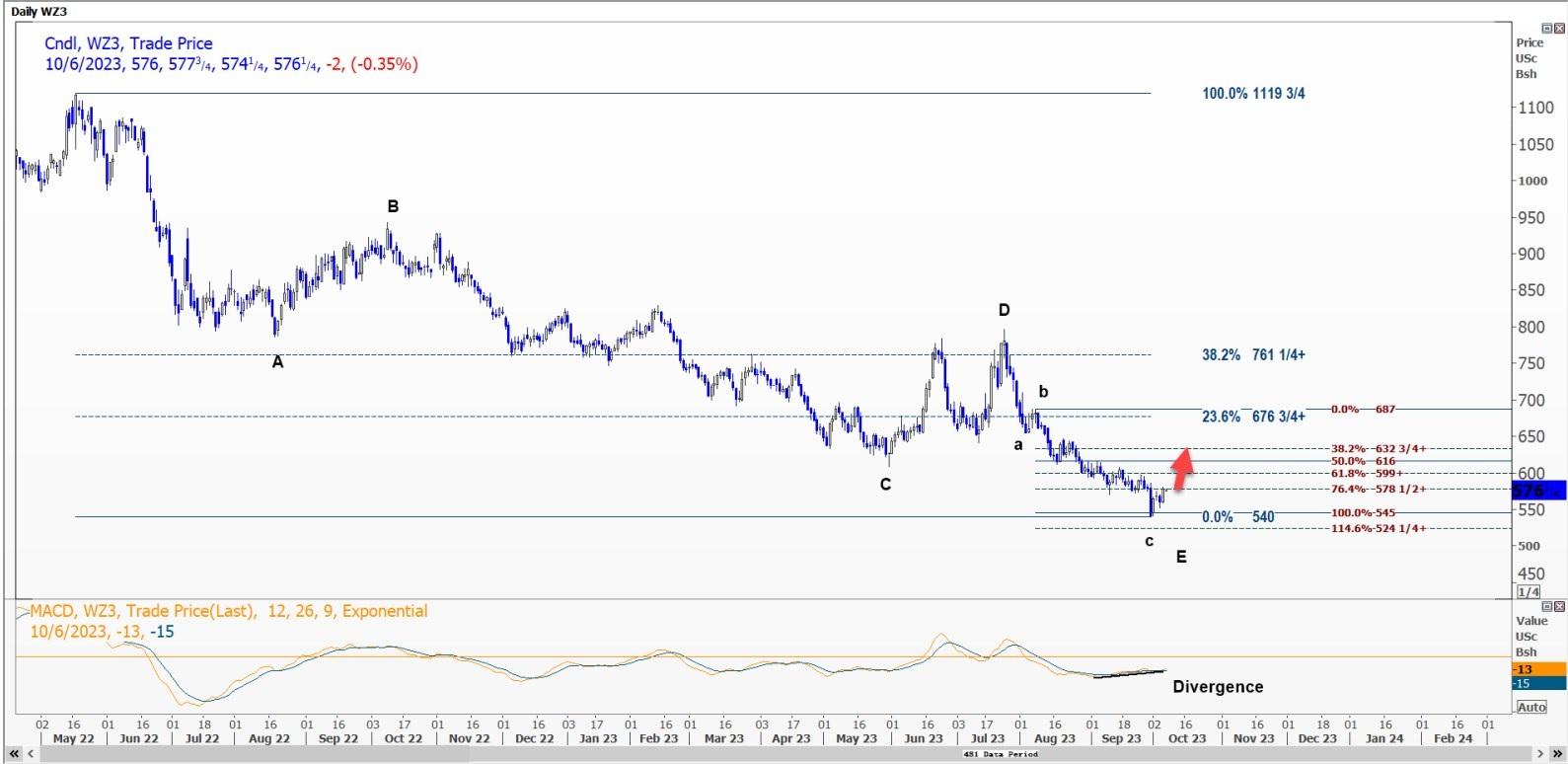 技术面受强劲的c波推动,CBOT 12月小麦WZ3涨幅可能扩大至每蒲式耳5.86-3/4美元。