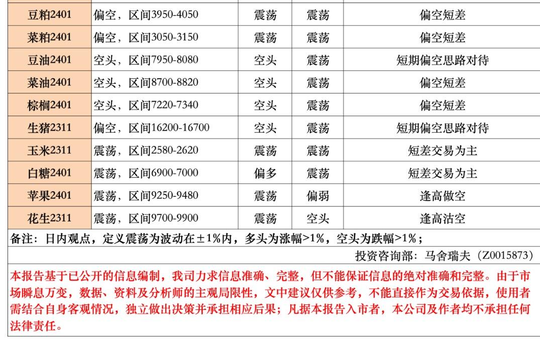 日内观点:定义震荡为波动在±1%内,多头为涨幅>1%,空头为跌幅>1%。