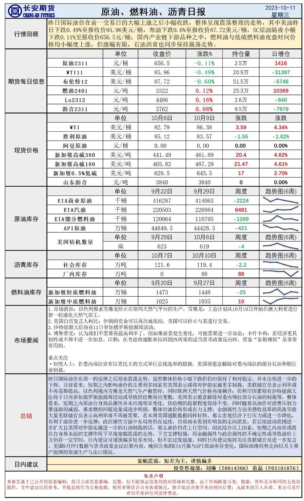 标题:长安期货10月11日原油早评:基本面稳定油价恢复震荡,通胀前夕关注EIA月报指引