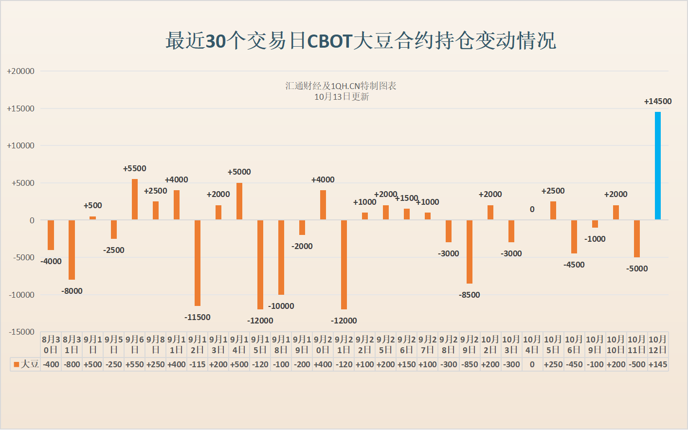 标题:CBOT持仓解读:美国收成下调后,美豆有望自8月以来首次周度上涨