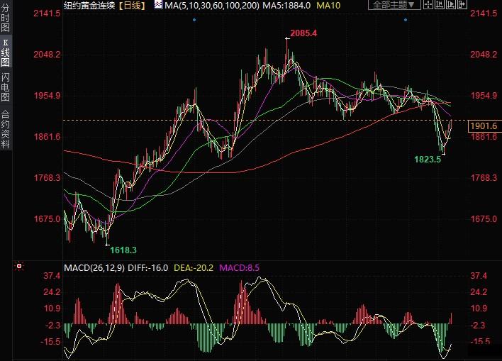 与此同时,COMEX期金日内涨超1.00%,突破1900关口,现报1901.90美元/盎司。