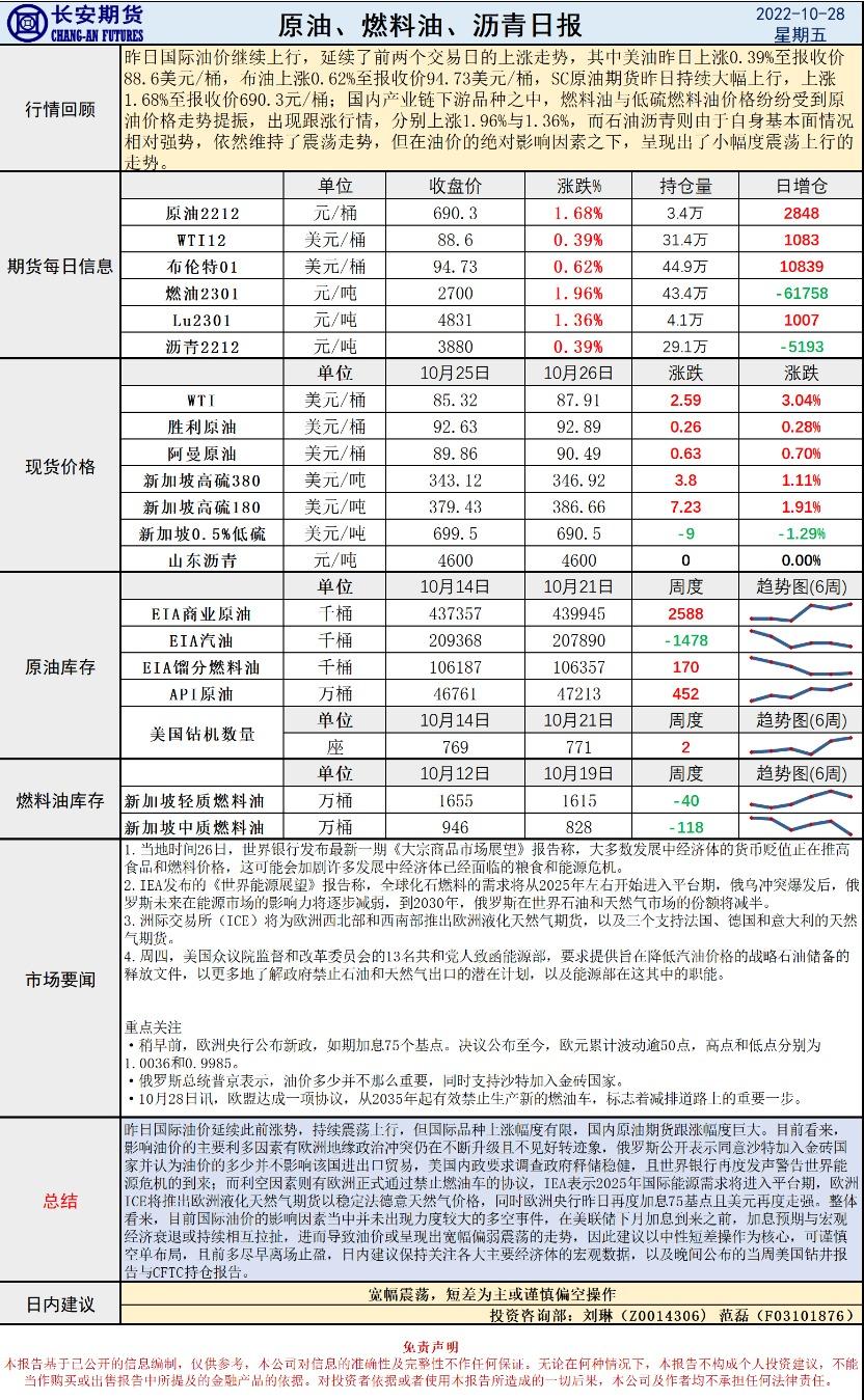 10月28日,长安期货发布原油早评,认为欧洲加息如期而至,美元再走强或压制油价涨幅,建议短差为主或谨慎偏空操作。