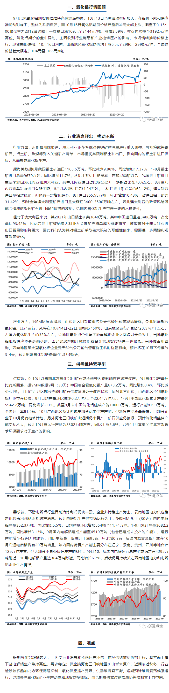标题:海通期货:行业消息和检修推动,氧化铝短期震荡偏强