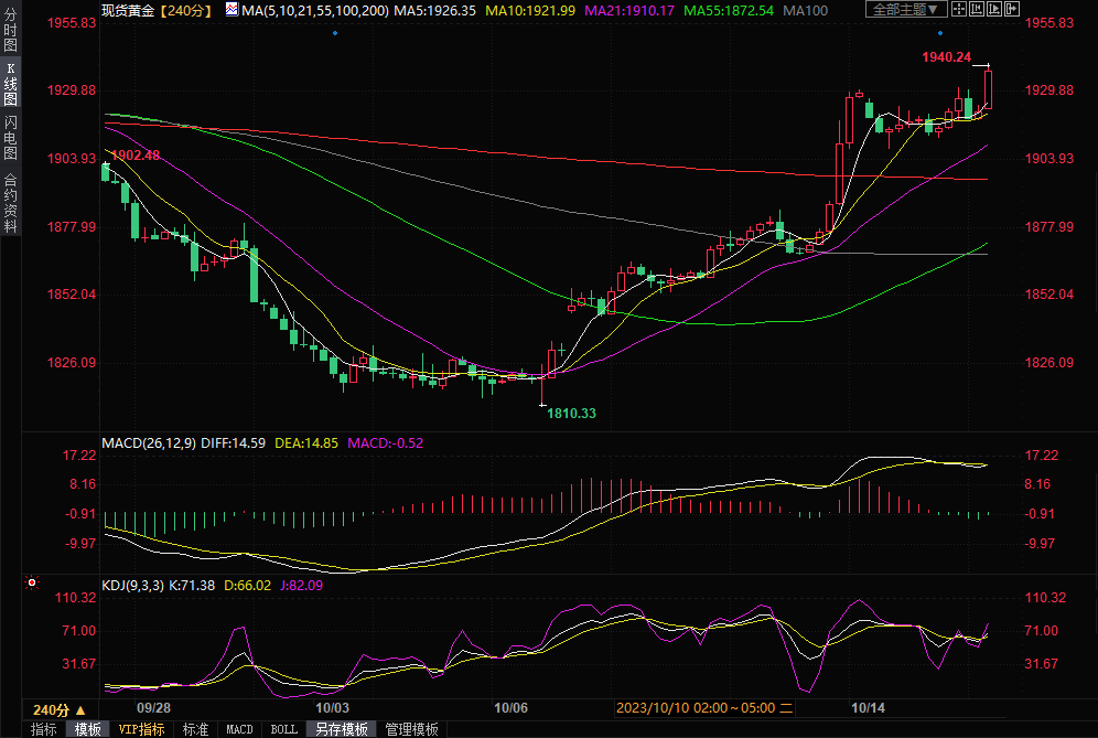 值得注意的是,金价刚刚突破上周高点1932.60美元/盎司,这令金价前景看涨。投资者密切关注以巴冲突消息,黄金被视为政治和经济动荡中的避险工具。