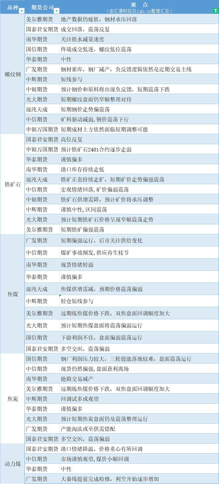 标题:期货公司观点汇总一张图:10月19日黑色系(螺纹钢、焦煤、焦炭、铁矿石、动力煤等)