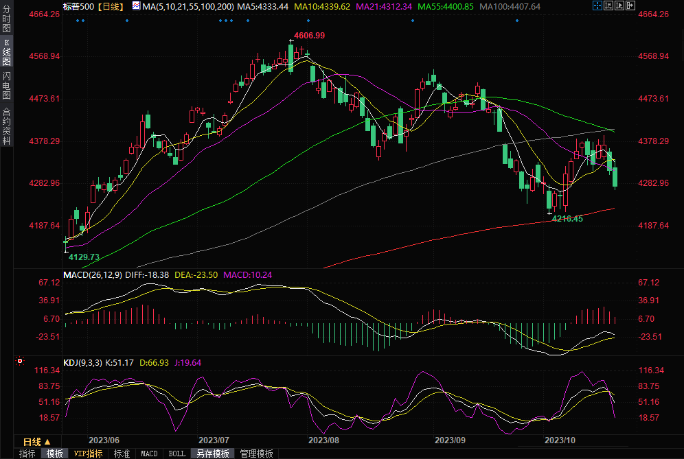 标普500指数10月19日收盘下跌37.25点,跌幅0.86%,报4277.35点;纳斯达克综合指数10月19日收盘下跌128.13点,跌幅0.96%,报13186.17点。