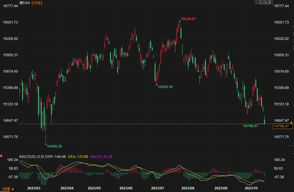 德国DAX30指数收盘下跌247.08点,跌幅1.64%,报14798.15点;