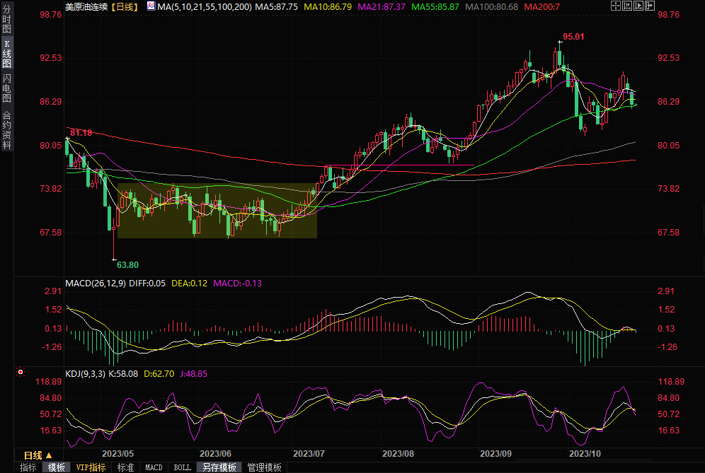 纽约交易的12月交割的西德克萨斯中质原油(WTI)结算价为85.49美元/桶,下跌2.59美元/桶,跌幅2.94%,盘中最低触及85.35美元/桶,为近一周新低。WTI上周上涨2%,前一周涨幅约为6%。