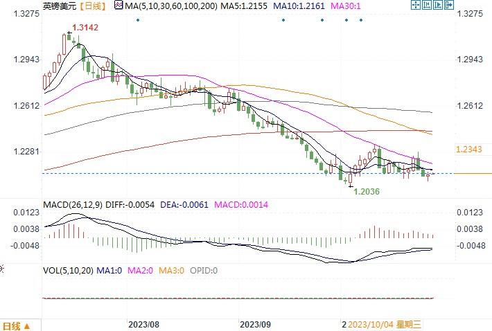 周四(10月26日),英镑周四盘中曾跌至三周低点1.2068,尾盘稍有拉升,最终收于1.2126。
