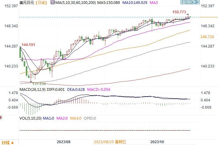 周四(10月26),日元兑美元走软,触及150.78的一年新低,与去年10月触及的32年低点 151.94相去不远,后者促使日本当局对汇市进行了干预。日本财务大臣铃木俊一早些时候警告交易商不要再次抛售日元,称当局正在密切关注日元走势。他没有直接评论干预的可能性。最近全球利率飙升,加大了日本央行下周调整公债收益率曲线控制政策的压力。日本公债收益率偏低,使日元很容易成为做空者和以日元为融资货币的利差交易的目标,日本和美国之间不断扩大的利差导致日元持续疲软。然而时至今日,日本央行仍没有实质的市场干预行动。有分析认为,日本当局对外汇市场的任何干预不仅取决于日元的交易水平,还要取决于其波动性。也就是日本央行不希望出现大幅走贬的市况出现。若真是这种态度,势必仍会助长套利交易不断推低日元,继续测试日本央行今年的容忍警戒水平所在。下周将迎来日本央行会议,须留意日本央行在此次会议上会否继续上调其收益率曲线的上限,从而带给日元一些支持。