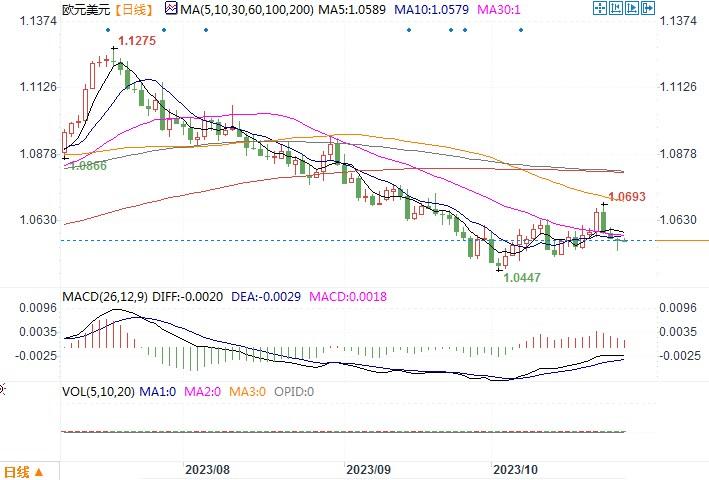 欧元兑美元下跌0.03%,报1.0564,盘中最低曾触及1.0520。美国商务部经济分析局公布的初估数据显示,第三季度国内生产总值(GDP)环比增长年率为4.9%,为2021年第四季度以来最快。接受路透调查的经济学家此前预测GDP环比增长年率为4.3%。这强化了一个信息,即美国在经济方面保持韧性,通胀也在某种程度上保持粘性。与此同时,欧洲央行周四一如预期维持利率不变,结束了本轮史无前例的连续10次加息周期,同时坚称任何有关降息的讨论都为时尚早。今日的声明与9月份的声明如出一辙。显然,他们不得不承认通胀下降的事实,这也是他们希望看到的,但最终他们仍试图保持一定程度的鹰派倾向,称通胀仍然过高。而今后如果欧洲的经济表现不佳的话,将会增强投资者对于欧洲央行将彻底结束本轮加息的预期。相反美联储似乎仍保有上调息口的可能性。息差优势料仍会支撑着美元逞强。日线图上,欧元/美元再度低落于布林带通道中轨线之下,前一周产生的升势几乎消失殆尽。下方继续留意1.05水平附近的支撑,若下破的话,欧元有继续探低风险。