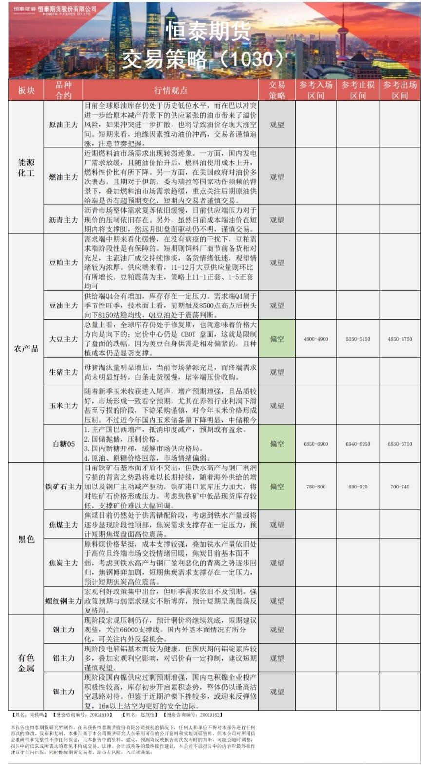 标题:恒泰期货10月30日交易策略:地缘因素推动油价冲高 燃料油市场需求转弱