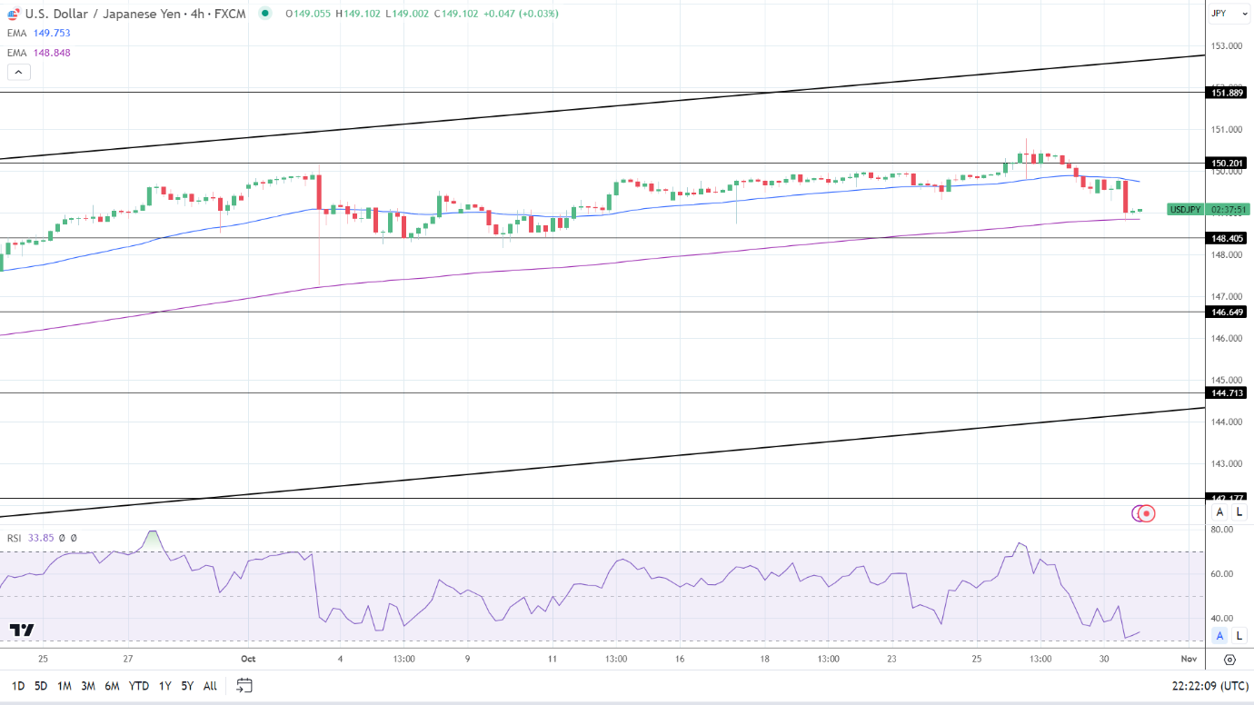 FXEmpire分析师Bob Mason表示,日线图上看,美元/日元维持在50日和200日均线上方,发出看涨价格信号。美元/日元跌破148.405支撑位,将导致空头在50日均线附近运行。