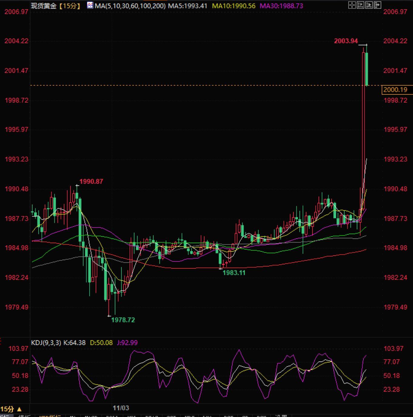 标题:美国10月非农新增就业意外低于预期,现货金价急涨上破2000大关