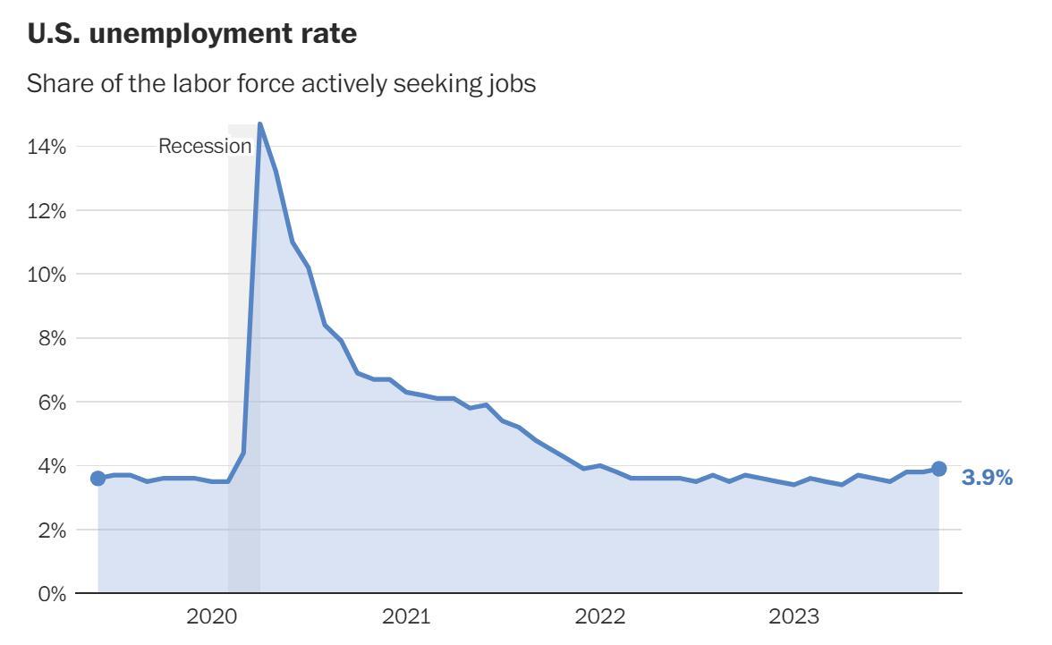 这一强劲表现与年初普遍存在的经济衰退担忧形成鲜明对比。包括美联储主席在内的许多人都表示担心,央行大力推动降低通胀将导致各行业失业,并可能导致经济陷入低迷。但这种情况还没有发生,至少现在还没有,尽管通货膨胀率已从去年夏天的高点 9.1% 降至 9 月份的 3.7%。本周,美联储主席杰罗姆·鲍威尔宣布暂时维持利率不变,同时称就业市场的弹性是“历史上不寻常且非常受欢迎的结果”。