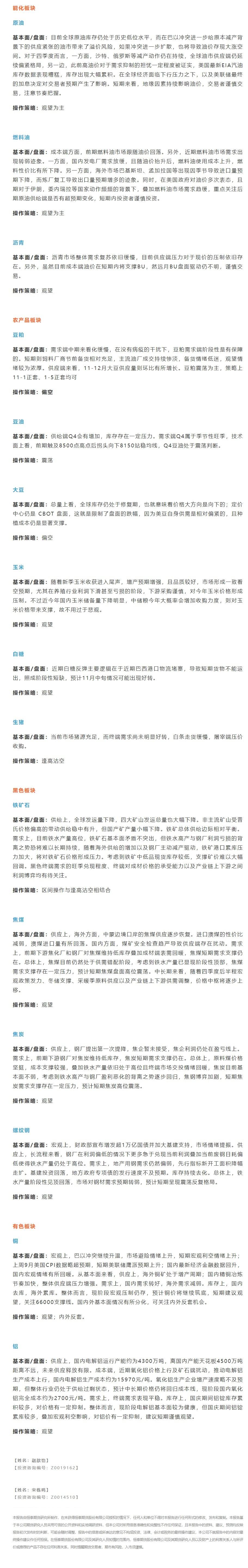 以下为恒泰期货11月6日对能化板块、黑色板块、有色板块、农产品板块期货交易提醒和建议。
