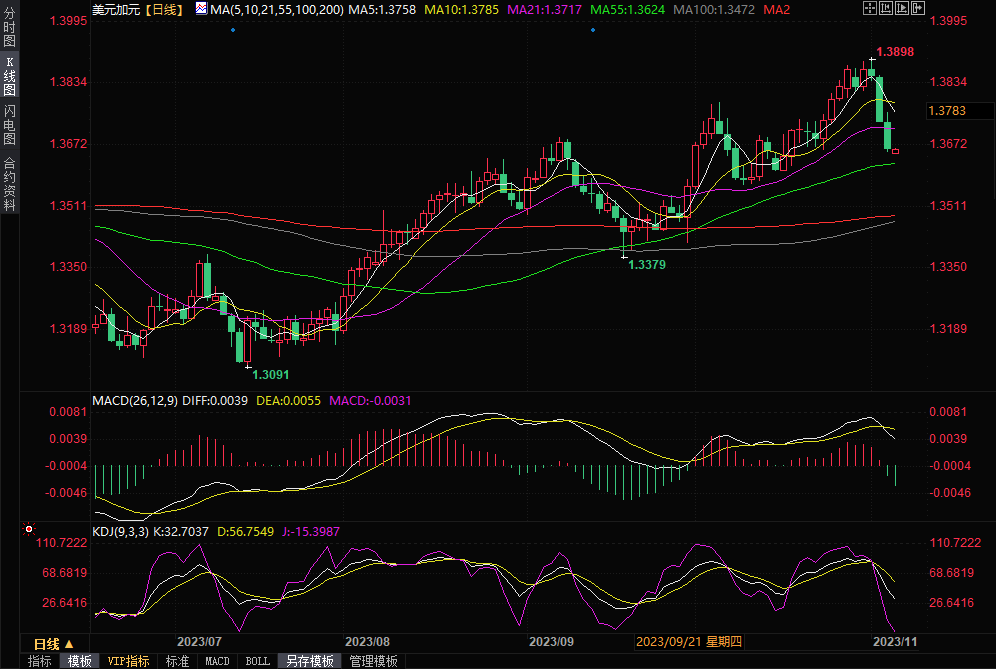 由于美国劳动力市场数据支持美联储可能已经结束其货币政策紧缩周期的押注,风险情绪高涨,加元兑美元上周五(11月3日)上涨。