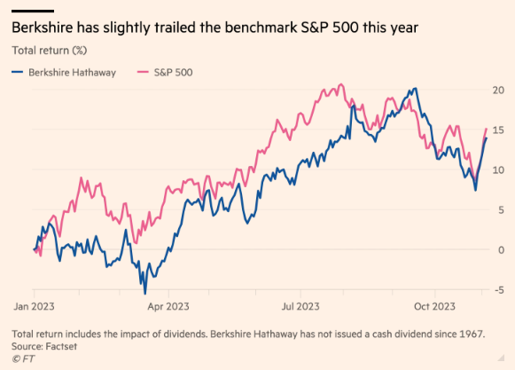 伯克希尔一直是美国利率上升的最大受益者之一,美国利率今年已攀升至5%以上。这位“奥马哈先知”一直在利用债券收益率飙升的机会,买入收益率至少为5%的短期美国国债。截至第三季度末,该集团拥有价值1264亿美元的此类投资,而去年年底约为930亿美元。