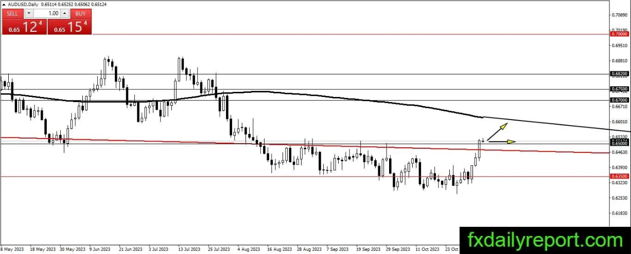 澳元/美元上周末上涨并收于0.6500上方,因此趋势转为看涨。该货币对将尝试继续走强,向200日均线移动。如果该货币对走弱,那么预期下一个支撑点将在0.6500点附近形成。