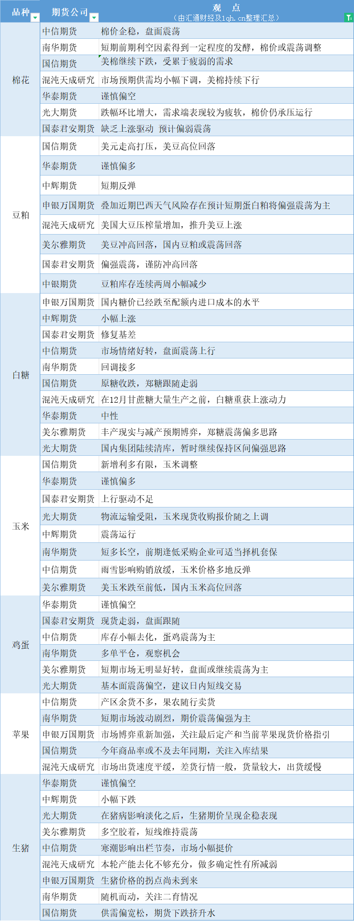 标题:期货公司观点汇总一张图:11月8日农产品(棉花、豆粕、白糖、玉米、鸡蛋、生猪等)