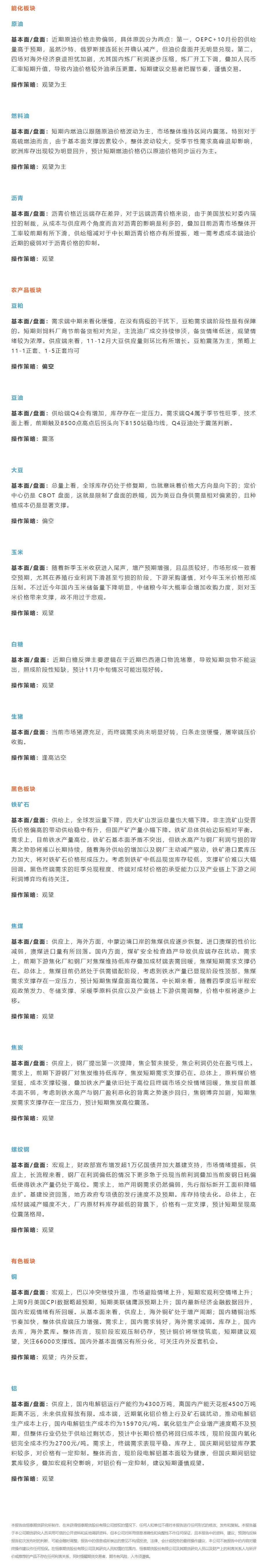 以下为恒泰期货11月8日对能源化工、黑色建材、有色金属、农产品期货交易提醒和建议