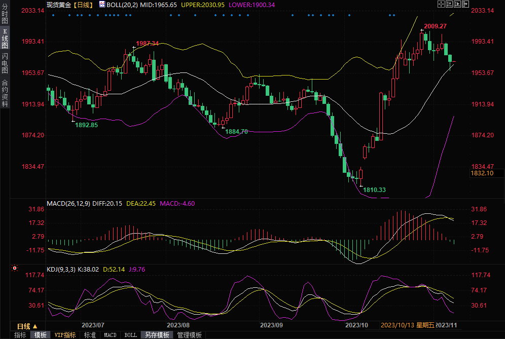 现货黄金周二收报1969.07美元/盎司,跌幅0.45%。
