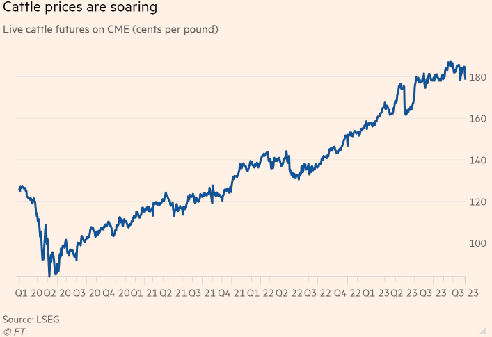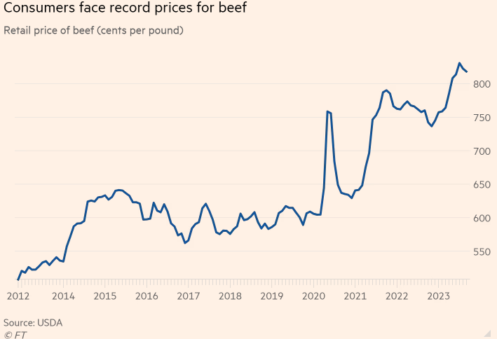 根据《金融时报》对农业部数据的分析,牛肉零售价格达到历史纪录。