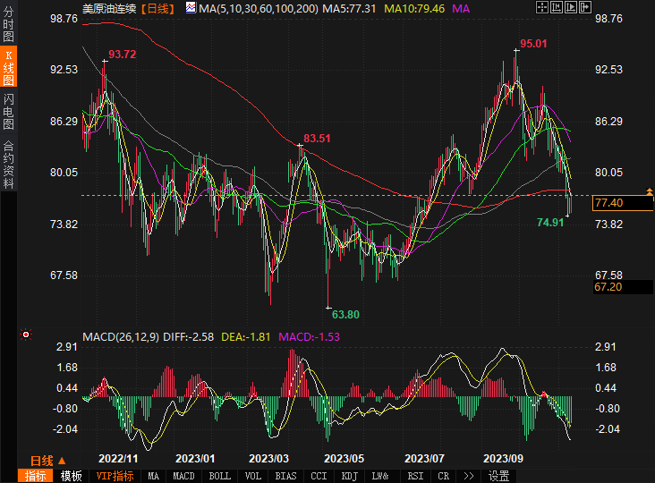 汇通财经APP讯——国际原油期货结算价涨近2%,本周累跌超4%。周五原油随股市上涨,但仍创下连续第三周下跌,因对全球需求的担忧加剧,以及巴以冲突的风险溢价消退。同时,伊拉克在两周后的会议前表示支持 OPEC+ 的石油减产,并且一些投机者在周末不确定性之前回补了大量空头头寸。WTI在周五大部分时间稳步攀升,收于77美元/桶上方,涨幅为1.9%。对需求减弱和供应增加的担忧正推动油价的长期下行趋势。尽管如此,价格还是以每周 4% 的跌幅收场,这是连续第三周下跌。