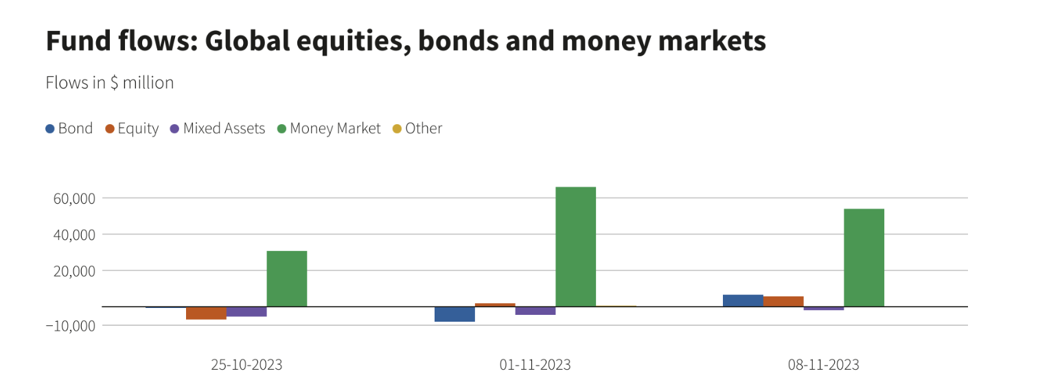 汇通财经APP讯——截至11月8日当周,全球股票基金的需求大幅上升,主要央行决定维持政策利率不变,投资者情绪有所改善。